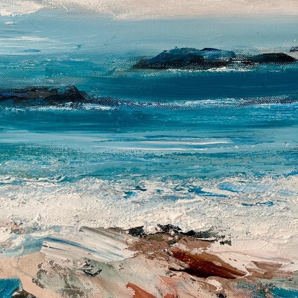 The day will being by experimenting with a variety of techniques on paper. We will cover skies, sea, rocks and sand exploring composition, colour-mixing and experimenting with the application of paint. In the afternoon we will put together what we have learnt on canvas.